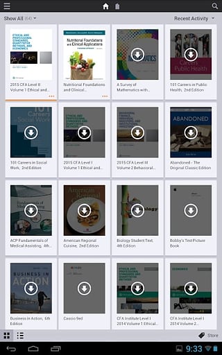 Use VitalSource Bookshelf® to download and access VitalSource eTextbooks on your Android powered phone or tablet. Read your books online or offline, search across your full library, and create notes and highlights to help you study. \\r