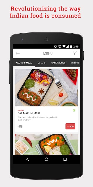Believing in product innovation, we have designed the All-in-One meal box, which fulfills new-age Indian meal, convenient to eat anytime, anywhere. We have given an interesting twist to Wraps, Sandwiches & Salads with a fusion of Indian & western flavors & have the most authentic, indigenous taste in Biryani & Curries. \\r