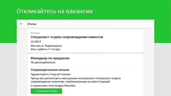 4. откликнуться на вакансии и позвонить работодателю прямо из приложения; \\r