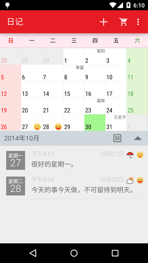 提供了日记和基本月历功能,写下你的心情,写下你多彩的生活。 功能列表:★ 支持情感和天气图标★ 可附带照片★ 选定时间提醒写日记★ 图案锁保护你的隐私★ 搜索日志★书签功能★ 月历功能★ 节日提示★ 备份到 Google drive 云端硬碟★ 统计页面 ★ 计算字数 ★ 超过 20 多个色彩主题