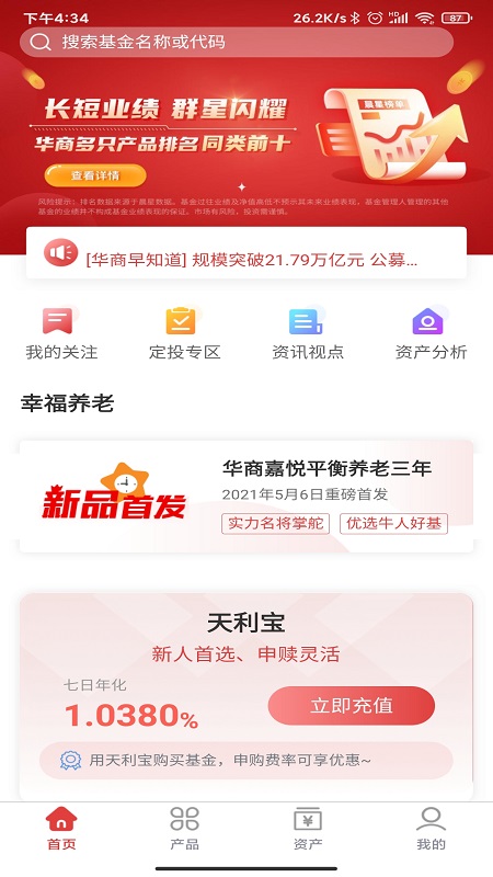 1、 基金交易:支持华商旗下基金的交易,享受费率折扣、操作方便快捷,还支持多家银行卡快捷开户