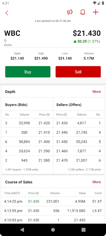 使用 Westpac 股票交易移动应用程序随时随地进行交易。