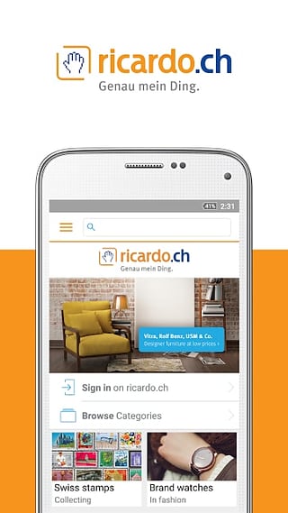 Use this app to search, buy, sell and monitor your activities at ricardo.ch. The app supports the existing ricardo.ch functions such as “watch”, “feedback” and “mailbox”. In addition, the advanced search is the easiest way of fine-tuning your search request. \\r