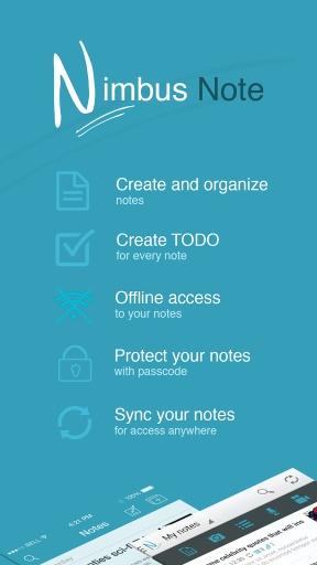 Nimbus Note 是一款适用于安卓系统的美观而强大的电子笔记应用。Nimbus Note 能够在把所有必要的信息收集在一个地方,因此你不需要花大量的时间来进行搜索。 利用 Nimbus Note 创建文本、图片、音频和视频、制作待办事项清单并全部进行同步,在其他设备上进一步查看和编辑。 \\r 主要功能:\\r-用照片和文本笔记记下所有的想法;\\r - 记录音频及视频笔记;\\r-创建备忘录;\\r-离线访问笔记;\\r-使用标签标记,轻松地找到笔记;\\r-支持子文件夹;\\r-为每个笔记创建待办事项清单;\\r-利用锁屏保护笔记;\\r-在地图上指定每个笔记的位置;\\r-小工具;\\r-通过任何手机设备和 nimbus.everhelper.me 同步笔记\\r 使用 Nimbus Note 一些案例:\\r-你是一个每分钟都要提前几天计划好的商务人士吗?即使以这样的节奏工作,你都可以始终掌握一切。Nimbus 会帮助你避免忘记重要的事情,记住有用的,方便地与同事和商业伙伴分享你的笔记。\\r-你是一个正在做论文研究的学生吗?当有太多的信息要处理时,会是一个相当辛苦的过程,很容易就会变得不知所措。Nimbus 将帮助你保持最重要的信息随时可用、组织数据以及在研究的每一个阶段记住所有任何重要的事件。\\r—你是一个很难离开笔记本电脑的作家吗?Nimbus 将帮助你记录下每一个想法,无论你在哪里,随时制作笔记。你不用再担心找不到这些信息,因为所有的文件都存储在一个安全的地方,一个可随时存取的驱动器上。