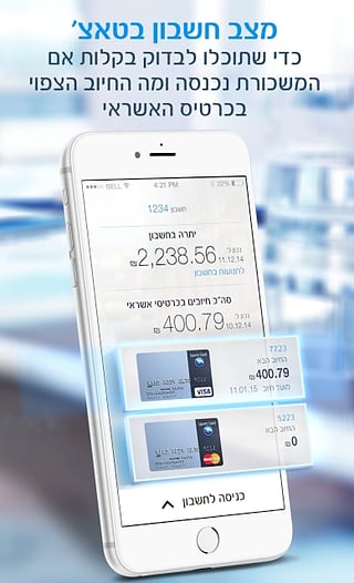 בעזרת האפליקציה ניתן לראות בכל נקודת זמן את מצב החשבון, חיובי כרטיסי האשראי וכל הפעולות הבנקאיות שביצעת. \\r
