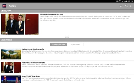 该 ORF TVthek - 奥地利最成功的视频平台 - 为用户提供了社会和用户一个全面的视频点播,提供超过 200 个节目,包括新闻,杂志,纪录片,讨论,文化,体育和娱乐节目宗教(表演,喜剧,电影,电视剧),以区域和儿童节目。此外,200 多个直播流提供,并提供众多的现代文化历史视频档案。