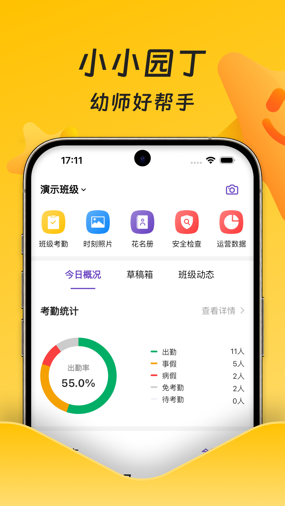 致力于打造幼儿园安全、健康、透明的育儿环境,时刻感知宝宝最新动态 1)到园、离园通知宝宝到园和离园,老师第一时间给您发送通知,让您安心、放心!2)宝宝相册记录宝宝精彩瞬间,无论宝宝开怀大笑、古灵精怪、萌萌哒,一一记载在册,实时分享宝宝状态和心情。3)班级公告精彩活动第一时间通知您,家长的贴身小秘书!4)班级互动面对萌萌的宝宝们,你可以发表你的想法、你的心情,给个赞让宝宝再接再厉!