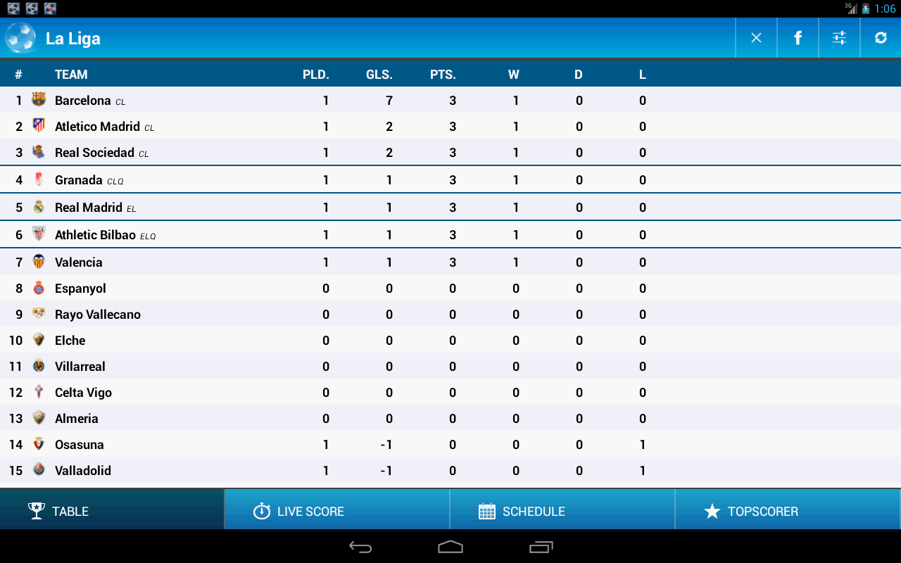 The screenshots are in Spanish but the app is multilingual and also includes English. Fast livescore notifications from the La Liga in football to your phone or tablet. Notifications are for FREE !!! La Liga is the app to follow standings, tournament schedule, livescore, topscorer, and more from the Spanish La Liga in football. Follow live matches and get notifications.It is possible to be notified from live matches. Settings let turn on and off notifications. You can get notifications even when your screen has been turned off. You can also choose your favorite teams and control refresh interval.The tournament schedule has the complete schedule. The schedule has a paging feature that lets you page between the rounds, jump to the current round, jump to season start and season end.PLEASE NOTICE: There is also a PRO version of this app available here on Google Play. The PRO version has even more features including goal score on all the previous matches played, red and yellow cards, landscape screens, press the players on topscorer list and get information on when they scored their goals, and more... Results – Fixtures – Football – English – Notify – Notifications – Alert – Live Score – Goal – Free - La Liga - Copa del Rey