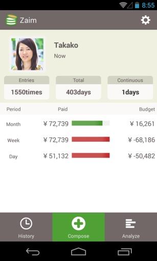 Basic bookkeeping features are streamlined to make them as easy to use as possible, while various analysis tools help you understand your finances better by answering questions like \\\"how much does everyone ELSE spend on food\\\". There are even features such as “Update Stamp Rallies” that reward you for staying on track. The goal of this service is to make it fun to stay on top of your finances, and we will be working rigorously to release new features on an on-going basis to keep it that way. ===================== Reasons to use Zaim ===================== 1) Easy to use user interface with attention to detail 2) Easy to use graphical analysis tools 2) Track remaining funds for each budget item 5) Ability to register stores where you spend your money 6) Automatic back up to Evernote7) Detailed online help and guides to assist beginners 8) Share your journal with other users for multi-user entries 9) Multi-currency support and automatic conversion (154 types of currencies) ================