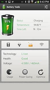 A simple and lite app for monitoring your battery, it provides battery information which allow you to control your power consumption, it comes with two widgets that can be set to your home screen, the widget background can be set to full transparent, the app allows you to display colored battery level on status bar with an option to hide it.The app also estimates time left for charging or discharging modes, the time is estimated according to your power consumption; therefore, it will keep varying based on current power consumption.The estimated time will not appear immediately, the app needs some time to monitor your power consumption to be able to estimate the time left. Features:The app displays the following information:- Battery level with number and battery icon.- Battery status.- Battery temperature in both “Celsius” and “Fahrenheit”.- The estimated time left for charging or discharging modes.- Battery technology.- Battery health.- Battery voltage.- Charging electric current for wide range of mobile phones.- Button takes you to system battery usage screen.The app has setting screen that allows you to set:- Temperature unit.- Widget transparent background.- Show battery level in status bar.Interested in translating app to your language? Please visit http://www.devexpert.net/ for more information. \\r