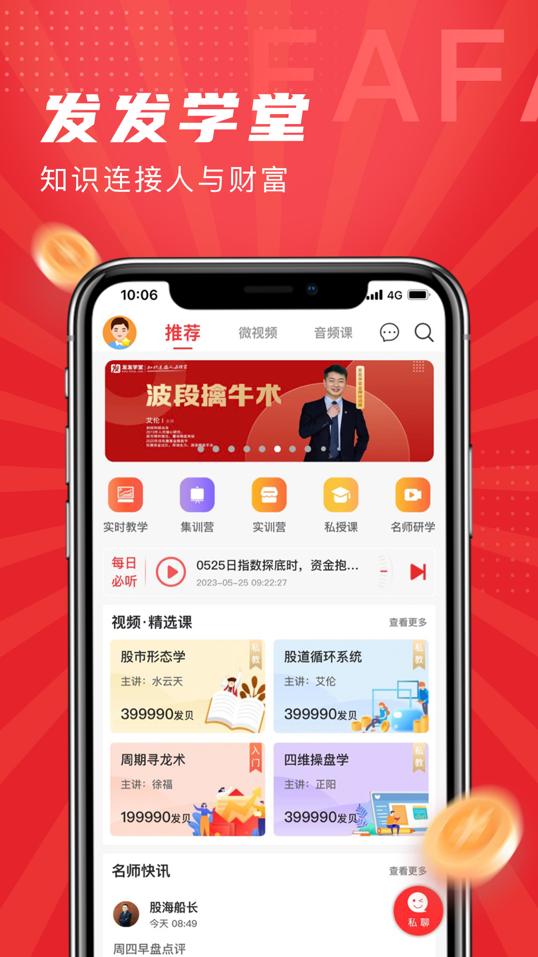 发发学堂 APP,是中润教育旗下专业的投资者教育服务平台。中润教育以普及金融知识提供金融教育为己任,致力于成为财商教育领域领先的互联网在线服务商。通过知名教授、专家、基金经理以及草根派实战大咖围绕金融理论与实践讲学,并联合国内优质音像出版社、视频在线平台、知识共享平台以及行业内知名线下培训机构,持续以视频和音频的形式传播金融知识。发发学堂,课程内容涵盖了炒股的多种知识点, 帮大家解读股市中的各种问题,让股民每天都能学习一个股票知识点。推出了 《名师研学》、 《牛博士教你学炒股》、 《股市加油站》等公益投教视频和文字课程, 增强投资者风险教育,倡导安全投资,推动投资者教育事业更好发展。