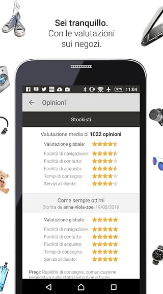 - mostra la valutazione media e i giudizi dettagliati dei negozi online, assegnati dai nostri utenti;\\r