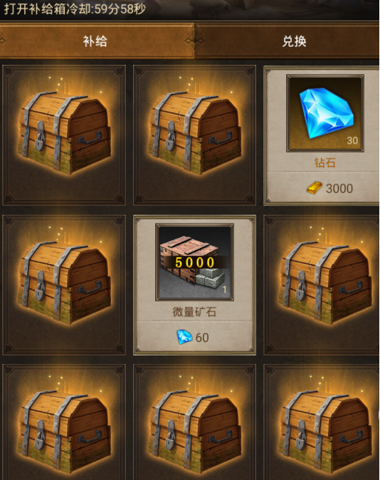 补贴里面有一定数量的钻石,一个小时可以开一次箱子,但只能购买一次,所以没有开到钻石的可以等一个小时,再开下一个箱子(个人觉得不一定非要抽钻石,里面的城战保护道具可比商店便宜很多,而且攒资源时很实用的)