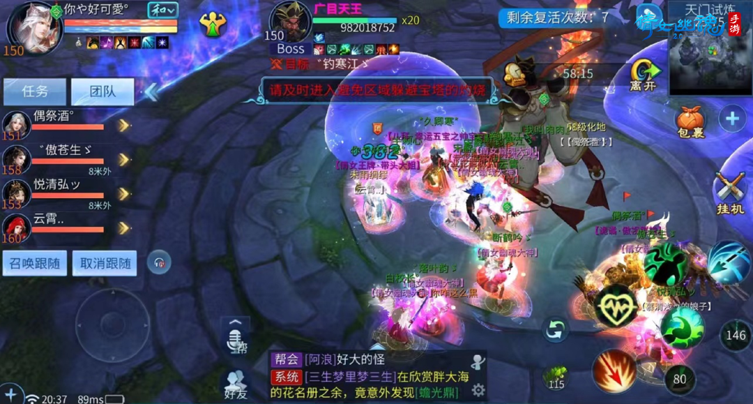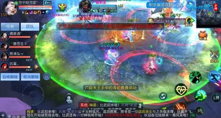 所以,在广目天王释放青蛇之后,玩家可以集中抱团,让医师轮流释放悬瓠济世,快速回复全团的血量,避免团队减员。