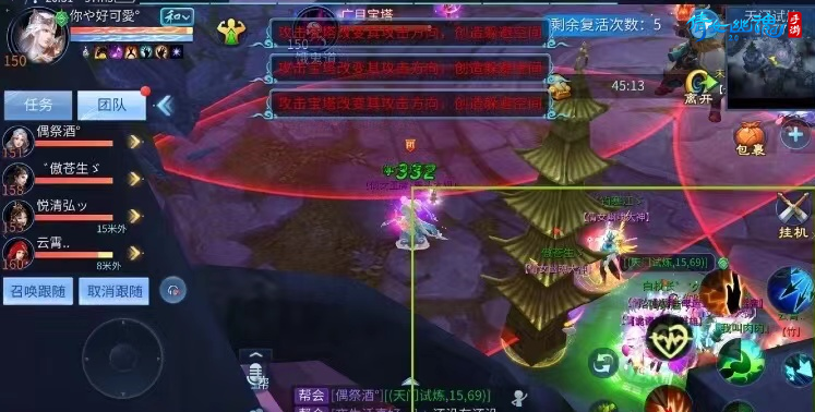 注意事项:在该阶段,玩家需要收起灵兽、鬼灵、傀儡,防止召唤兽攻击宝塔,影响队友吸引宝塔的仇恨。