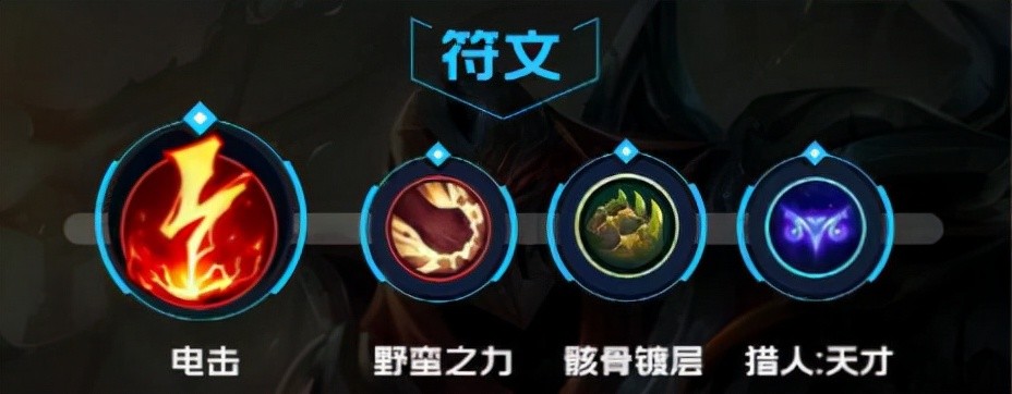 1.电击流符文搭配:电击+野蛮之力+骸骨镀层+猎人天才