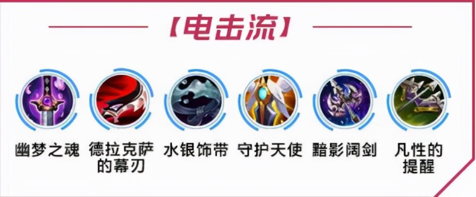 1.电击流出装:幽梦之魂+德拉克萨的幕刃+水银饰带+守护天使+黯影阔剑+凡性的提醒
