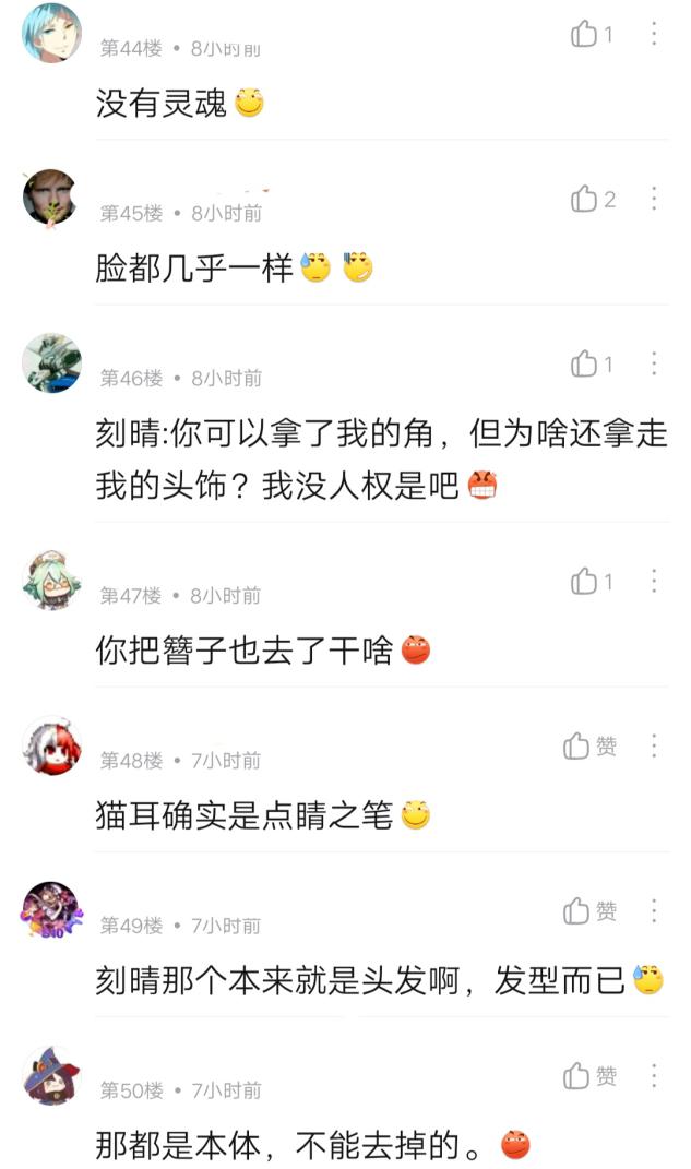 从结果来看,甘雨虽然去掉角后,会有些许的违和感,但并不影响甘雨本身的颜值,反观刻晴,情况就没有那么好了,去掉角之后的刻晴,完全没有那种傲娇大小姐的感觉,感觉就跟普通人一样,没有了自身的特色。而在看到这个结果后的玩家们更是表示,刻晴的角是本体,不能去掉,去掉之后整个人完全没了灵魂。