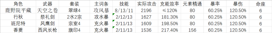 3.行秋就是常规配置,这是一个缺充能的队,祭礼双 E 是必要的。