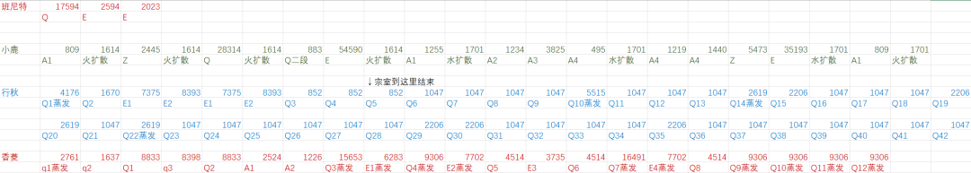 1.从本节第一张图可以看到,存在行秋触发蒸发的情况,因为段时间内高频扩散和高频火,以及释放技能的停顿,是会造成这种现象的。