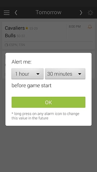 * Never miss a game! Set an alarm and be reminded to tune in.\\r