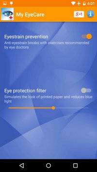 Protects your sight when you look at a phone or tablet screen for a long time. Makes your phone screen look like a printed paper. Blocks harmful blue light with a special filter. System of breaks with eye exercises based on medical recommendations will prevent eye-strain and preserve your eyes health. It makes reading e-books, playing games and browsing web pages safe for your eyes, especially at night.Spending a lot of time looking at a smartphone or a tablet screen, reading ebooks or webpages for a long time on your phone screen? Do you often have a feeling that your eyes are tired and dry? Have dark circles and pouch under eyes? Wearing glasses or your last eye exam went not well? Then this application is for you!It is proven that blue wave length light is harmful for eyes and may even cause cataract or retina damage after couple of years. It is also a main cause of sleep disorders like insomnia - sleeplessness, because it cause our brain to stop secrete melatonin - a sleep hormone.