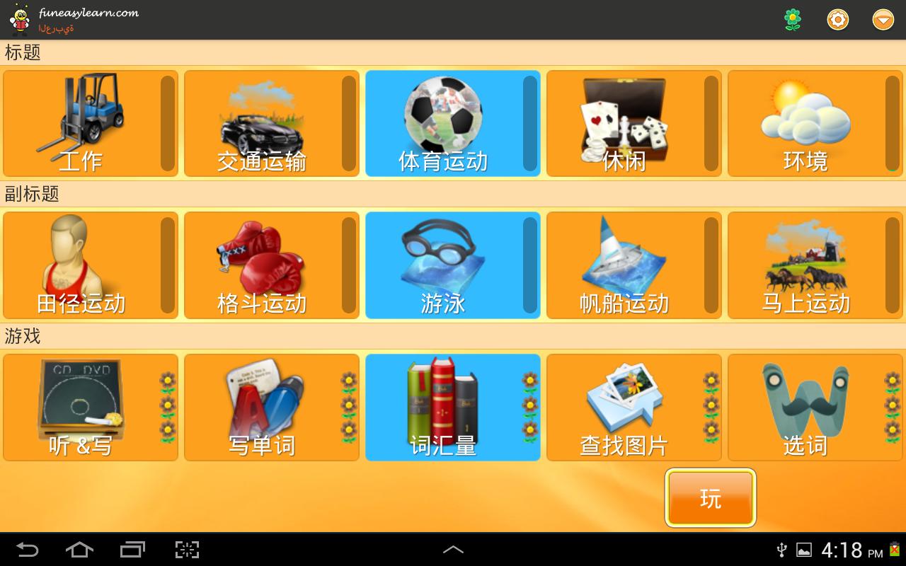FunEasyLearn 是一种又容易又有趣的学习阿拉伯语的新方式,无论您喜欢听异国的音乐,还是出国旅游,或者工作于一家跨国公司,又亦或和外国朋友聊天,都来获取免费词汇的应用程式吧!学习* 6000个单词与图像,充分说明单词和由阿拉伯语为母语的人的发音录音和拼音。* 词汇涵盖 15 个专题并划为 140 个副主题。* 整个词汇已被翻译成 50 种语言:✔ 简化中文语 ✔ 繁体中文语 ✔ 丹麦语 ✔ 乌克兰语 ✔ 乌尔都语 ✔ 俄语 ✔ 保加利亚语 ✔ 克罗地亚语 ✔ 冰岛语 ✔ 加泰罗尼亚语 ✔ 匈牙利语 ✔ 南非语 ✔ 印地语 ✔ 印尼语 ✔ 土耳其语 ✔ 塞尔维亚语 ✔ 巴西葡萄牙语 ✔ 希伯来语 ✔ 希腊语 ✔ 德语 ✔ 意大利语 ✔ 拉脱维亚语 ✔ 挪威语 ✔ 捷克语 ✔ 斯洛伐克语 ✔ 斯洛文尼亞语 ✔ 斯瓦希里语 ✔ 日语 ✔ 朝鲜语 ✔ 格鲁吉亚语 ✔ 法语 ✔ 波兰语 ✔ 波斯语 ✔ 泰语 ✔ 爱沙尼亚语 ✔ 瑞典语 ✔ 立陶宛语 ✔ 羅馬尼亞语 ✔ 芬兰语 ✔ 英语 ✔ 荷兰语 ✔ 菲律賓语 ✔ 葡萄牙语 ✔ 西班牙语 ✔ 越南语 ✔ 阿塞拜疆语 ✔ 阿尔巴尼亚语 ✔ 马其顿语 ✔ 马来语等。乐趣* 从 7 个有趣的游戏选择独特的娱乐方式学习。* 内置“类别旋转”功能,可允许应用程式为您随机选择一个主题,副主题和游戏以提高您的学习经验。容易* 使用应用程式时,无须互联网的连接。* 3 个难度级别:初级,中级和高级。* 从 50 个预编程界面语言里选择您的*语言教学 :阿拉伯语,中国语,英语,德语,法语,西班牙语,俄语等。学习阿拉伯语的应用程式是完全免费的!-------------------关于 FunEasyLearn.com:与 funeasylearn.com 的学习应用程式,您可以免费的学习阿拉伯语。通过图像演示,录制的发音里学习超过 6000 个单词以及母语翻译者所翻译的 50 种语言:简化中文语,繁体中文语,丹麦语,乌克兰语,乌尔都语,俄语,保加利亚语,克罗地亚语,冰岛语,加泰罗尼亚语,匈牙利语,南非语,印地语,印尼语,土耳其语,塞尔维亚语,巴西葡萄牙语,希伯来语,希腊语,德语,意大利语,拉脱维亚语,挪威语,捷克语,斯洛伐克语,斯洛文尼亞语,斯瓦希里语,日语,朝鲜语,格鲁吉亚语,法语,波兰语,波斯语,泰语,爱沙尼亚语,瑞典语,立陶宛语,羅馬尼亞语,芬兰语,英语,荷兰语,菲律賓语,葡萄牙语,西班牙语,越南语,阿塞拜疆语,阿尔巴尼亚语,马其顿语,马来语,阿拉伯语等。此应用程式的词汇按主题划分并涵盖了日常世界里的大多数环节,从餐厅,酒店,家庭到工作场所,太空到动物王国。FunEasyLearn 是一种珍贵的学习工具,因为它有很多由专家们开发的好玩游戏。FunEasyLearn 是非常完美于任何想要学习阿拉伯语,英语,德语,法语,西班牙语,意大利语,俄语等。请通过在 Android 市场留下了良好的评级以支持我们,或者如果您喜欢它,就与您的朋友在 Facebook,Twitter 或 Google+上分享这个应用程式。如果您有关于这个应用程式的任何问题,请随时让我们知道 support@funeasylearn.com-------------------参观我们:http://www.funeasylearn.com 喜欢我们:https://www.facebook.com/FunEasyLearn 跟随我们:https://twitter.com/funeasylearn 围绕我们:https://plus.google.com/+Funeasylearn\\r
