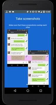 2. Choose the screenshots to stitch them into a tall one.Tips: for better matching result, please take screenshots in order and make sure the overlaps. FEATURES:- Now it works with fixed background images- Making long screenshot fast, easily and automatically.- Just scroll and capture the screenshots then all done by the app.- Editing screenshot with drawing on it.- You can also stitch manually(awesome)- Elegant and easy-to-use user interface!- Manage the screenshots your ever made.- Easy to share with you friends or to the social media.Please, instead of just giving a bad rating, contact us for any problem! We are always willing to help you!Don\'t like ads? Download Stitchcraft to remove ads and limits!