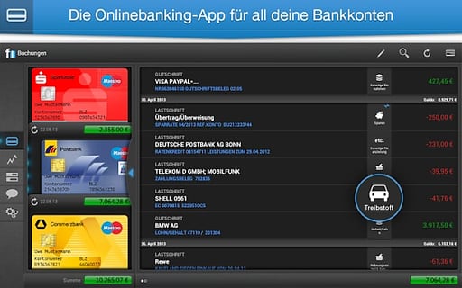Die kostenlose, TÜV-geprüfte Onlinebanking App für alle Ihre Bankkonten und Kreditkarten. finanzblick bietet (Foto-) Überweisung, Autokategorisierung, Auswertungen, photoTAN, Budgets, Push-Nachrichten (Alerts) und ermöglicht Datensychronisation auch mit iOS, Web, Mac OS, Windows und Windows Phone. Zudem unterstützt finanzblick alle Sparkassen, Volksbanken, Postbanken u.v.a.m. \\r