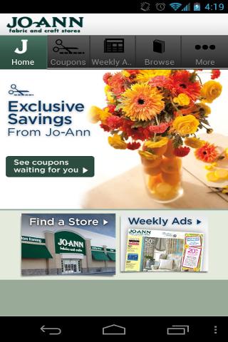 Your favorite fabric and craft store is now available on Google Play! The Jo-Ann app is stocked with features to make your Jo-Ann shopping experience even more rewarding.\\r