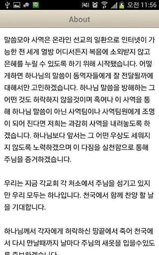 말씀모아 사역은 온라인 선교의 일환으로 인터넷이 가능한 전 세계 열방 어디서든지 복음에 소외받지 않고 은혜를 누릴 수 있도록 하기 위해 시작됐습니다. 어떻게하면 하나님의 말씀이 동역자들에게 잘 전달될까에 대해서만 고민하겠습니다. 하나님 말씀을 방해하는 그 어떤 것도 허락하지 않을것이며 혹여나 이 사역을 통해 하나님 말씀이 아닌 사역팀이나 사역팀원에게 조명이 되어 진다면 저희는 과감히 사역을 내려놓도록 하겠습니다. 하나님보다 앞서는 그 어떤 우상도 세워지지 않도록 노력하겠으며 이 다짐을 실천함으로 통해 주님을 증거하겠습니다. \\r