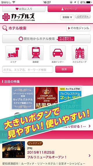 カップルズの会员登录をすると、ホテルをお気に入り登录できたり口コミができます! \\r