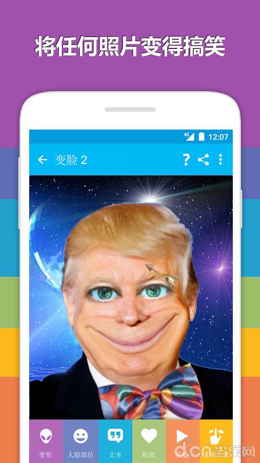《变脸 2》变形任意照片,打造搞笑变脸。在拥有 4000 万用户后,我们推出了拥有更多搞笑选项的全新改进版 CNET: ”如果你在搜一款既消磨时间又好玩的照片应用,这款应用就是为你准备的。任意扭曲变形朋友们的脸,保你爆笑不已。”主要功能换掉人脸部位 搞笑的眼睛、鼻子、疯狂发型、纹身、恐怖伤疤等等自动变脸 可选各种变形特效,包括外星人、胖子、瘦子等等。涂抹可重调脸形。换脸 交换同一张照片或不同照片中的人脸即刻重放 自动创建变脸过程视频。可在 YouTube、Facebook、Whatsapp 或任何支持视频附件的邮箱分享视频。混合照片和一个不同的背景,将自己放到沙滩、月亮上,我们预先提供了许多背景,也可以用自己的背景。贴纸 超过 600 个贴纸,涵盖任何主题任何场合。导入照片,可从相机图库、Facebook、Instagram 导入或从网上搜图片功能丰富 可在照片上添加文字或绘画,补妆、添加贴纸,使用克隆工具等等分享图片和视频给朋友们好玩、易用,而且易学易分享。虽然有点荒谬,但是绝对搞笑无极限!