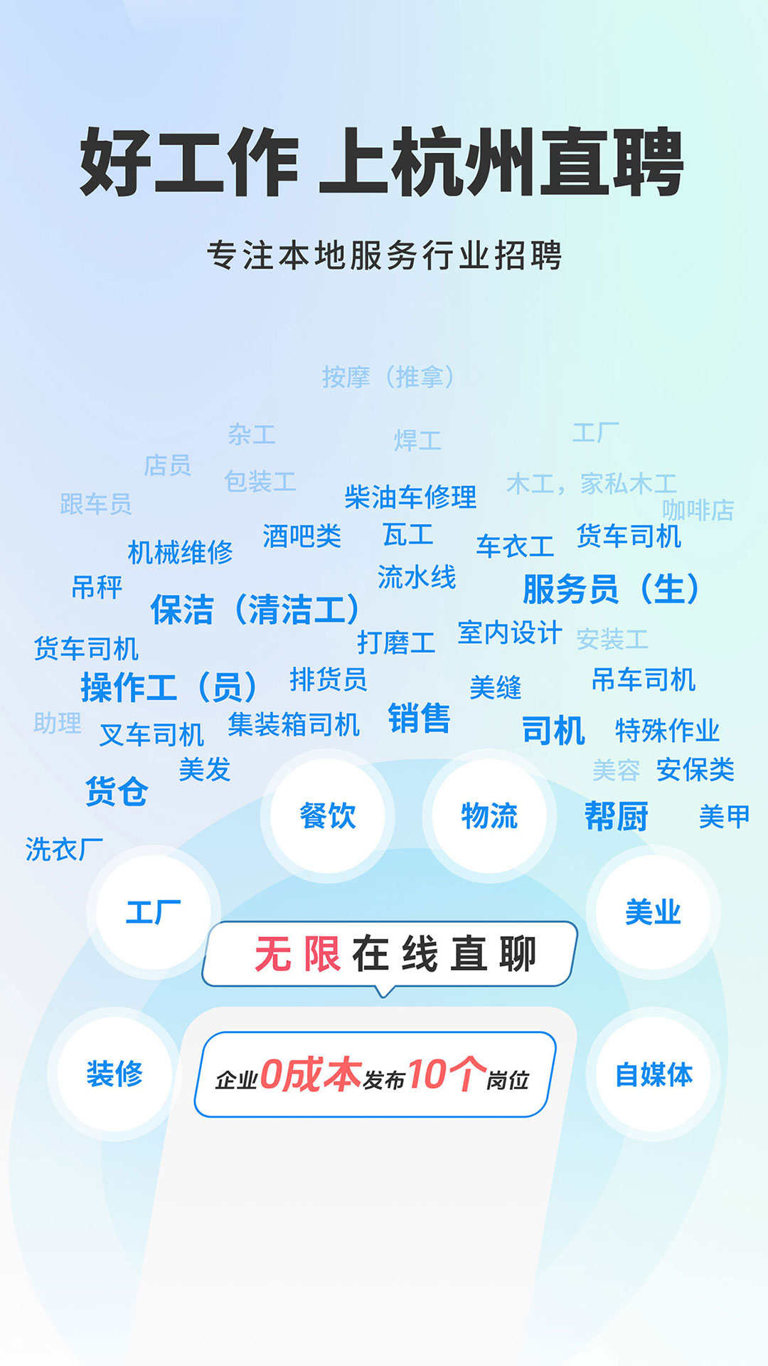 杭州直聘-杭州人的求职招聘 APP,专注“服务行业”,垂直行业提高求职效率,节省企业&商家的招工费用!