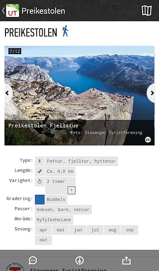 I UT-appen finner du et stort utvalg av fotturer, sykkelturer og skiturer i Norge. Bruk GPS-posisjonen din eller søk blant 900.000 steder og få kart, beskrivelser og bilder av turer og hytter i nærheten. Turkartet viser alle Turistforeningens T-merkede stier og kvistede løyper. UT.no er en tjeneste fra Den Norske Turistforening. \\r