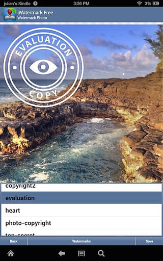Create your own text watermarks using any the Android fonts directly in iWatermark. Or you can import your own graphic watermarks to expand the range of possibilities. These can be signatures or logos which are made on your computer (which has more fonts and abilities, see FAQ below for more details) and then synched over via email and saved to the photo library. \\r