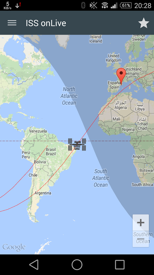 ISS onLive allows you to watch realtime video of earth from International Space StationNotes: This is a beta preview version 8.(some users reports that app crashes on start, specially in Android 5.0. I'm trying to solve it. Thanks for messages.)Note: I think it is solved!! If has problems, uninstall and install again.News version 8:- Fix day and night layerNews version 7:- Solved important bug in Android 5.0 and some devices (crash on start)- Added spanish translationNews version 6:- New lateral menu- New full map view- New configuration settings -keep screen on -video only with wifi (prevents data carrier usage) -map lock ISS -show orbit -show day/night layer- Help only appears once and you can see it again with help optionNews version 5:- Add realtime night/day regions in map- Better map panning and automatic return to ISS- Smaller ads in landescape viewNews version 4:- Fix video stream- Add rate buttonNews version 3: - Resolved multiple problems/bugs - Show ISS orbit over mapNews version 2:- Double tap for fullscreen video- Immersive mode where available- Better performance on rotate screen- General optimizations- New material design- Android 5.0 compatibility - Be sure you are using a wifi connection because the streaming video consumes a lot of data.About video stream:- Black Image = International Space Station (ISS) is on the night side of the Earth.- No Audio = Normal. There is no audio by design.