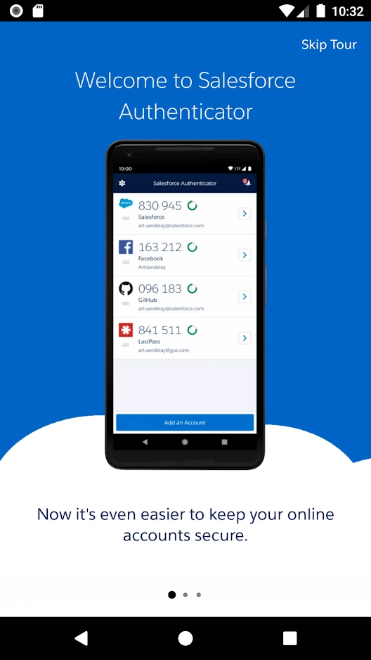使用 Salesforce Authenticator 保护您所有支持基于时间的一次性密码 (TOTP) 的在线帐户。任何允许使用“Authenticator 应用程序”进行多重身份验证的服务都与 Salesforce Authenticator 兼容。