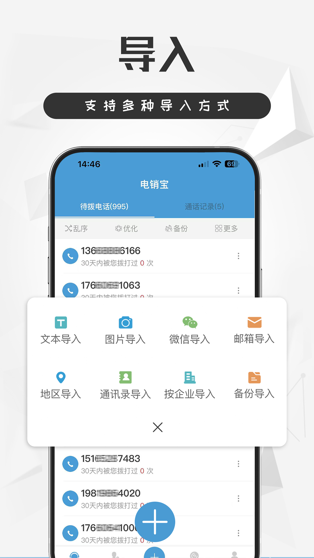 号码导入:支持文本、图片、微信、邮箱等多种导入