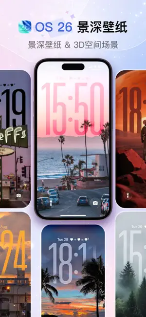 空间景深壁纸:专为 OS 26 优化的景深壁纸全新上线!通过智能分层与空间感设计,使时间与壁纸元素自然融合,让你的屏幕更具层次感与个性。