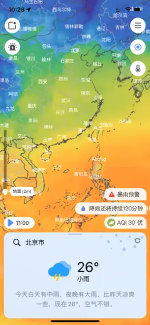 支持全球百万级城市的天气数据查询,甚至如果有一天你漂流在大海中,也可以掏出手机查看海水温度和海浪流向。