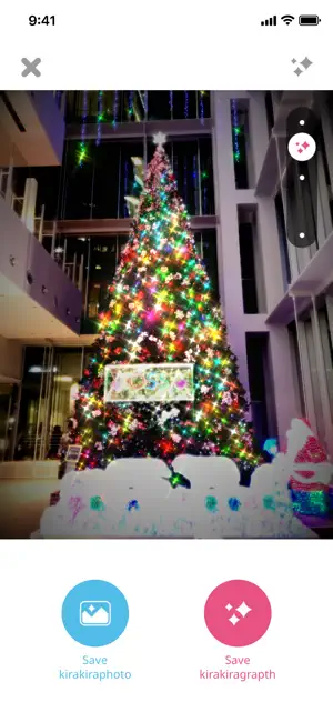 With this app, you can add effects like a cross filter to attach to the camera lens. Light emitting materials and reflective object will shine even more.\\nJewelry, glass, illumination, etc. Please use when you want a gorgeous shot a little!\\n!!! Please be careful for too much light. !!!\\n\\n■ Basic function\\n- You can shoot the video and photo with impressive Glitter effect. \\n- You can edit photos and videos from photo albums.\\n- You can create \\\"kirakiragraph\\\" from still image.\\n- Swipe left and right to change effect.\\n- Adjust light with Kirakira power slider.\\n- On the confirmation page, 25 histories are displayed.\\n ( Please check the photo album for the shooting data older than that. )\\n\\n■ Notes\\n· Sometimes, there is an unintended area is sparkling ....\\n· By the situation at the time of shooting, \\n the video might not all glitter or too sparkly.\\n Please try to adjust with kirakira power slider.\\n\\n\\n#FEEDBACK\\n\\nif you experience any problems or have questions or suggestions please contact: