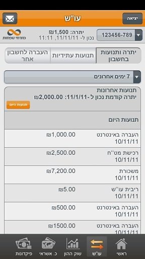 • עו\\\"ש - יתרות ותנועות בחשבון, תנועות היום ועתידיות\\r