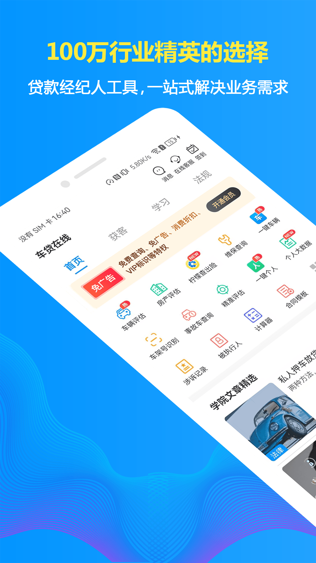 二手车估价,车架号查询以及个人授权数据,行业资源群覆盖全国,为超过 90%的贷款经纪人打造同行交流平台,同时贷款学院助你全面的学习成长。