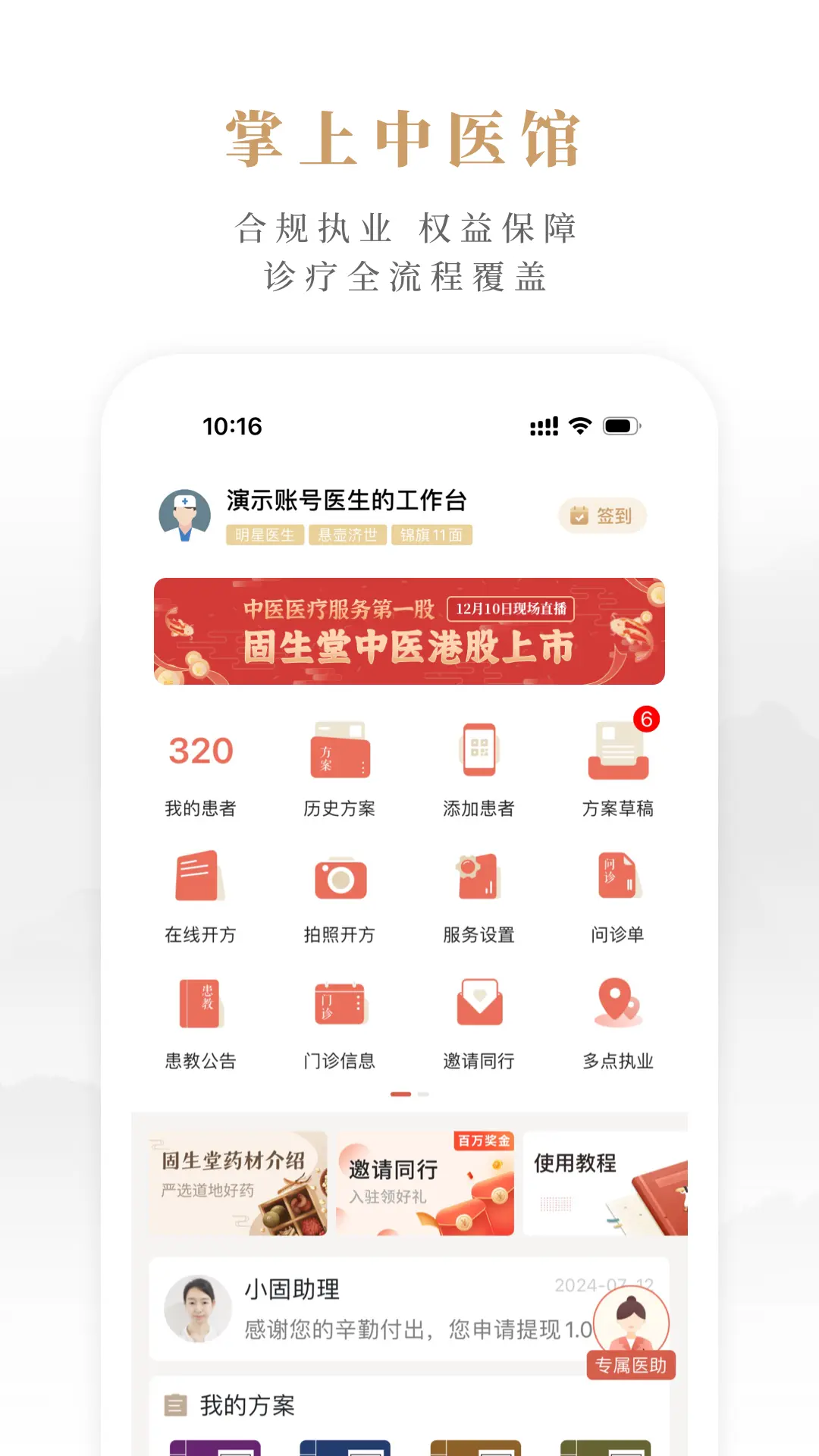 固生堂医生端是一款移动医疗工具,重新定义了互联网时代的“望、闻、问、切”。针对各种体质、疑难杂症提供健康调理方案,让医生足不出户为用户解决使用中药的问题。
