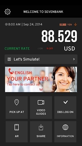 SEVEN 银行开发的智能手机软件。导向屏支持显示日语,英语,菲律宾语,中文,泰语,越南语,印尼语,葡萄牙语和西班牙语。\\r