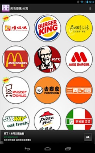 曾经到了麦当劳才想起优惠券放在家里?或是拿着一大张优惠券觉得不方便携带? 美食优惠,台湾,最多、画质最佳、最方便的优惠券 app 就在这!【使用说明】*查看:可使用双指可缩放,或是使用放大缩小按钮。*搜寻:使用 google map 来搜寻附近的店家*排序:“美食优惠,台湾” 会把常点击的店家排序在前面,让使用更方便。*分享:“美食优惠,台湾” 可以把优惠消息透过 Line、WhatsApp 等等软件…直接分享给朋友。【重要声明】此软件非该营运相关公司开发,仅为网络信息提供,数据正确与时效若有问题请联络开发者!此软件图片来源皆为网络素材、版权与著作权皆为原网站所有,优惠详情请见各单位官网并以各店家公告为准,特此声明!【程序收录】麦当劳, 汉堡王, 肯德基, 摩斯汉堡, 顶呱呱, MisterDonut, 吉野家, 三商巧福, SUBWAY, 必胜客, 拿坡里, 达美乐, 星巴克, 85cafe, 伯朗咖啡, 丹堤咖啡, 西雅图咖啡, 怡客咖啡, 陶板屋, 西堤牛排,夏慕尼, 艺奇, 聚, 舒果, 曼咖啡, Hot7, 石二锅, 品田牧场, 王品牛排, 无老锅, 老四川, 鼎王, 莫凡彼咖啡馆, 莫凡彼欧风餐厅, 棒恰恰美式餐厅, 凯萨帝义式, 争鲜回转寿司, 乌丼亭, 海寿司, 寿贺喜屋, 定食 8