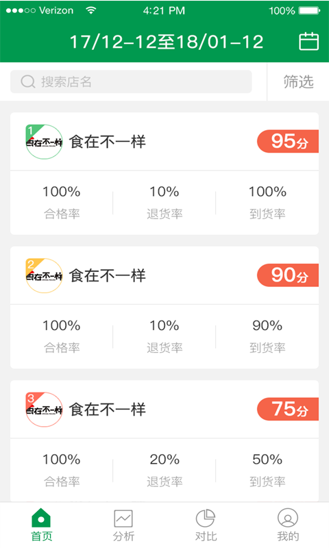 收货达标率统计:通过详细的统计数据,用户可以了解各个商店的收货达标率,确保货物的质量和及时性。
