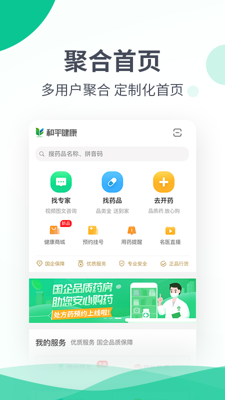 和平健康 APP 是由重庆医药(集团)股份有限公司打造。公司始终秉承以人民健康为中心的价值理念,成立和平新健康创新业务板块,利用信息技术整合集团线上线下“两网”营销服务资源,提供药品供应、健康管理、药品监管三大服务,打通线上线下多种渠道,搭建“医、患、药、政”融合发展的健康服务体系,构筑便民惠民的个性化用药供应平台。
