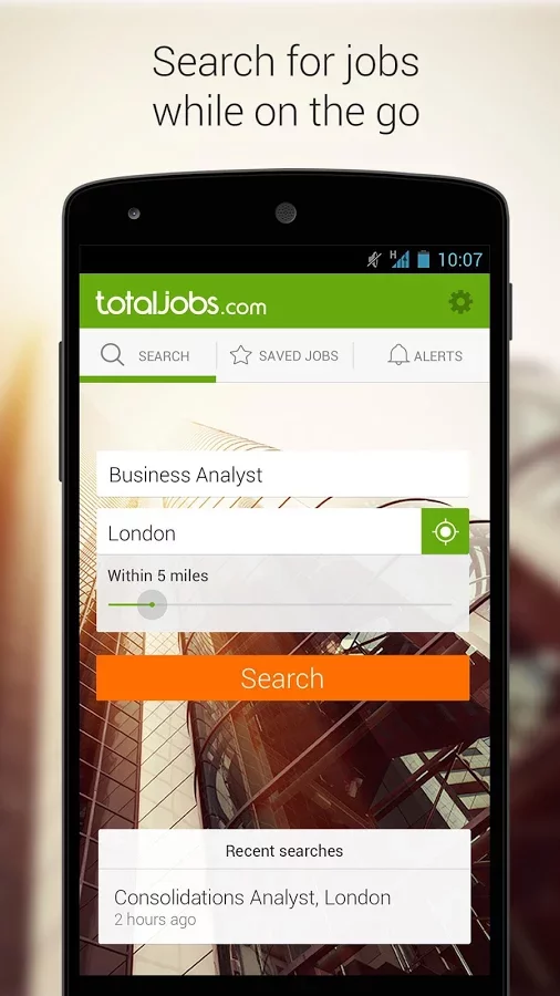 Looking for a job while on the move? The Totaljobs Job Search App is here to help! Here’s how: Totaljobs.com is one of the UK’s leading jobs boards, attracting around 6 million jobseekers every month on the hunt for one of the 120,000 live job ads listed on our site. This activity generates over 2 million applicants a month, cementing totaljobs.com’s strong reputation among jobseekers and recruiters alike. Whether you’re sat on the bus, walking through town or in the comfort of your very own living room, you can search and apply for jobs with our app in just a few simple taps. Complete with a wide range of Native features, it delivers an engaging user experience that will guide you through your search and apply in a series of quick and easy steps. Join the Totaljobs family- Search for vacancies with one of the UK’s leading jobs boards- Find jobs with millions of other jobseekers - Look through job ads from multinationals to regionally-based businesses- Share your favourite listings via social mediaSearch- View new and saved jobs efficiently- Create job alerts and receive personalised push notifications- Find jobs posted daily from 40+ sectors- Filter by relevance, salary, date or distance It’s all about location- Browse jobs from all over the UK- Use in-app map functionality to find jobs locally- Adjust your search radius by miles- View recent searches to speed up the processApply with your cloud-saved CV- Access your CV using modern cloud technology- Upload your personal details in just a few easy taps- Join millions of other Totaljobs job candidates online- Don’t want to apply now? Email yourself the ad and save it for later Applying for jobs has never been so easy!Totaljobs are committed to listening and actioning customer feedback to enable our applications to continually evolve, so please rate and comment whenever possible. We would love to know how we can better assist you with your job search through mobile apps.